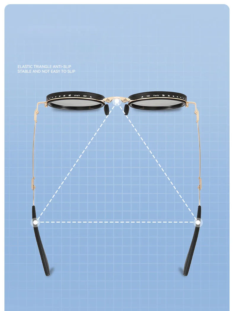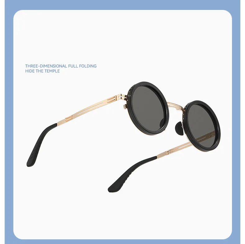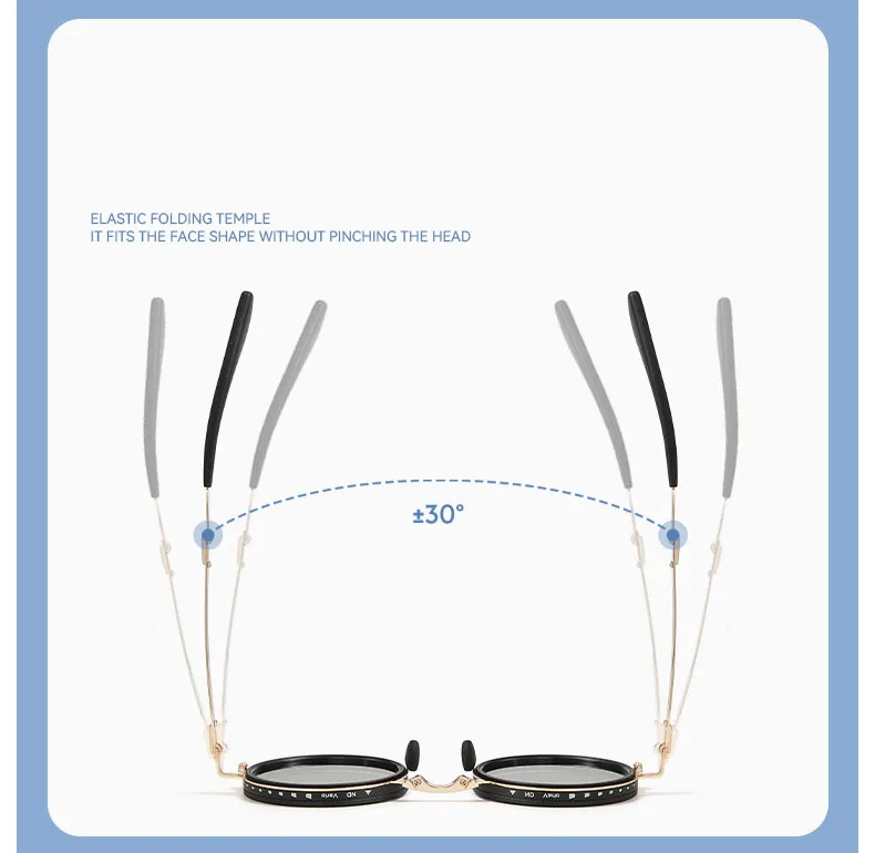 Using a three-dimensional full folding design, the folded temples are hidden, making it easy to carry and store in a pocket. The temples have undergone multiple opening and closing tests, ensuring durability. The lenses feature upgraded light filtering technology, providing dual-sided sun protection and multi-band anti-reflective coating for a clear, high-definition view.